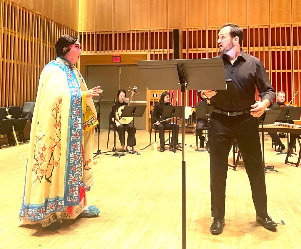 The second part of the program offered a new thirty-minute operetta, The Enigma, with libretto by Pan Geng and music by Ma Hanrui. The concept of this operetta was inspired by Madame Butterfly by Puccini. Tenor Finnbar Carey was marvelous with emotion, nuance, and sound. The role of the Chinese opera singer-character, sung by Yu Xiangwei, needed more substantial foregrounding than the reportorial narrator ably sung by baritone Nathaniel Sullivan with earnest excitement.