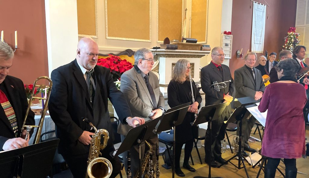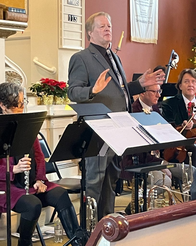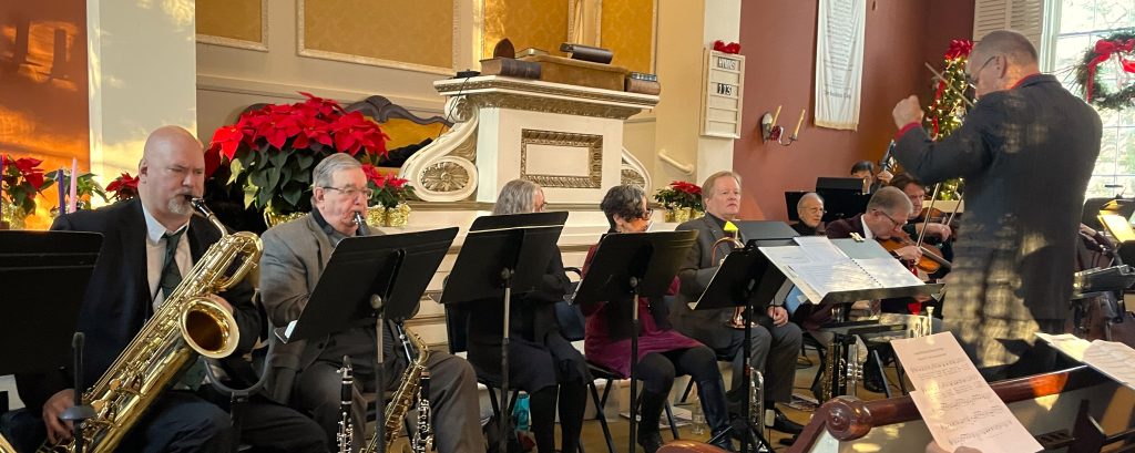 Last Saturday, on December 6, the Smithfield Chamber Orchestra, under the musical direction and arrangement by trumpeter Matt Finley, performed its annual Christmas celebration, marking its 20th anniversary at Smithfield Church. Denise Jordan Finley greeted people and introduced Pastor Rev. Douglas Grandgeorge, who made a few amusing quips. Clerk Kevin T McEneaney read his new annual Christmas poem, “Sing Out, Once More,” to general acclaim.