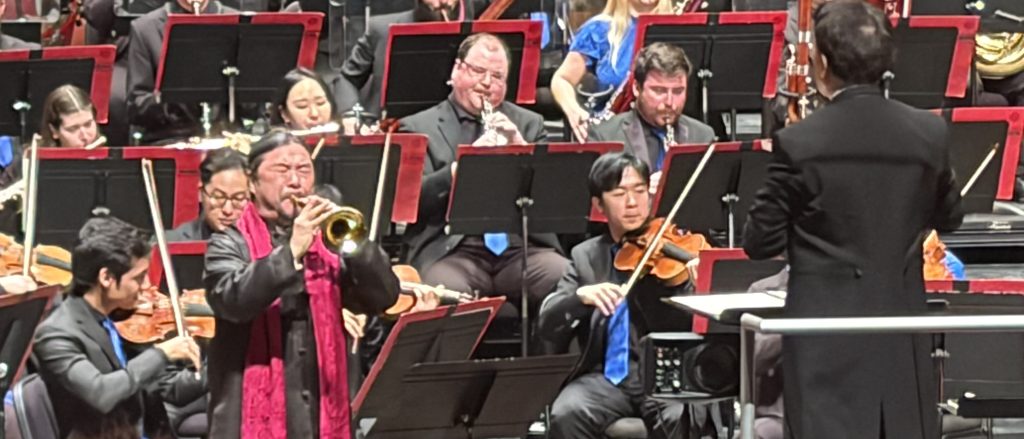 While the concert program appeared to be over, an unexpected and lengthy encore featuring Yazhi Guo on bass suona nearly blew the roof off Sosnoff Hall! This was the most memorable encore that my ears have ever heard, and I am still hearing this encore reverberate in my brain as I type….